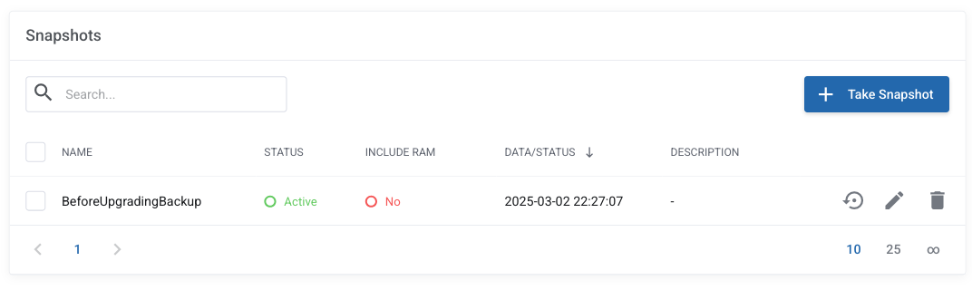 Backup and Recovery: If something goes wrong with the VPS (like data loss, software failure, or security breach), you can restore the VPS to the exact state it was in when the snapshot was taken. This is usually recommended before you do a system upgrade or upgrade any of your installed application such as Wordpress.